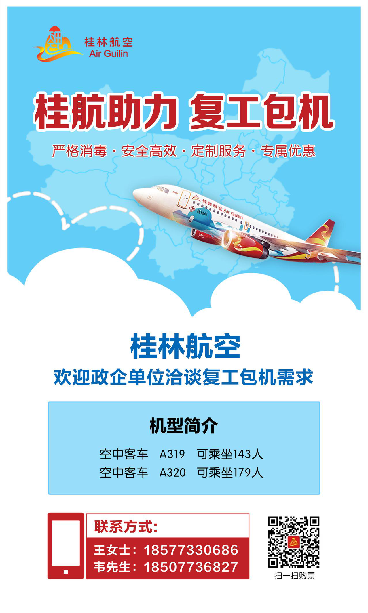 近期,新型冠状病毒肺炎疫情席卷全国,为有效缓解政企单位返岗人员交通出行困难的问题,提供更为健康安全便捷的出行方式,桂林航空现推出客运临时或短期包机运输服务,助力各地政府、企业单位有序复工复产。